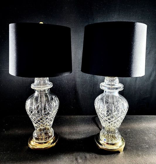 Set of Two (2) Waterford Alana Urn Style Fine Cut Crystal Table Lamps w/ Shades!