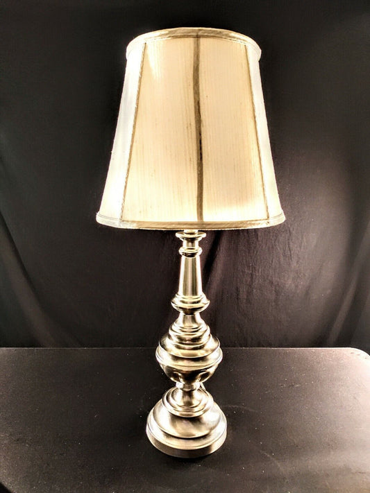 Genuine Stiffel Rare Aluminum Fine Brushed Silver Table Lamp with Original Shade