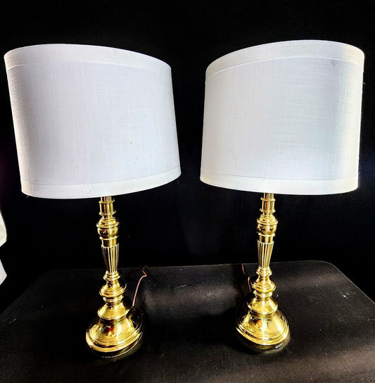 Set of Two Solid Brass Stiffel Buffet Lamps - 30 inches Tall - MINT CONDITION!