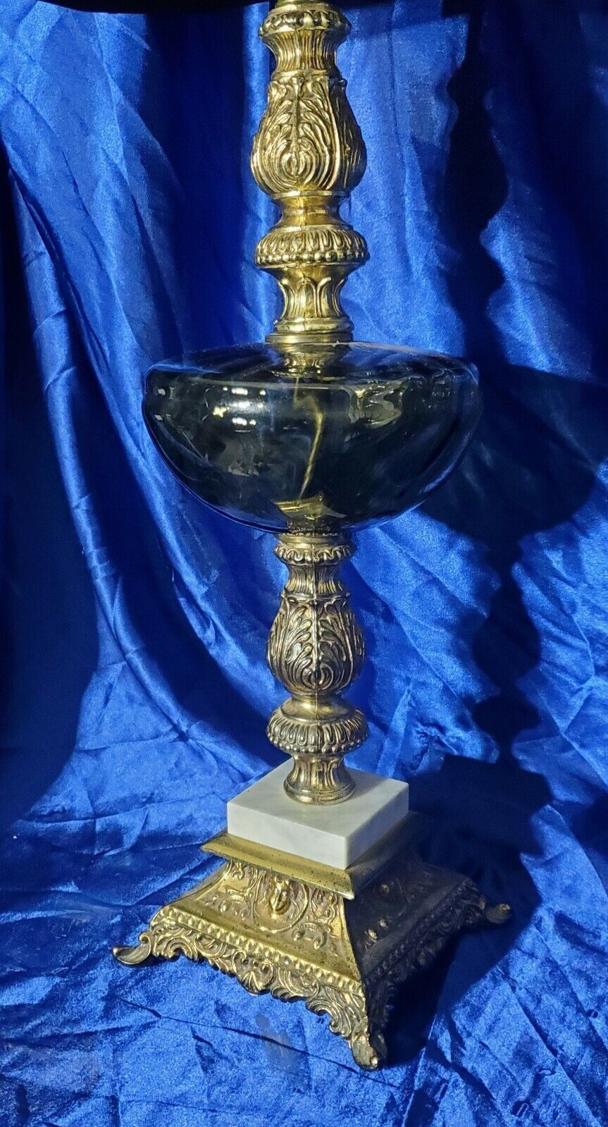 Please note that the lamp is sold without the pictured shade or other decorative items, which were used solely for illustrative purposes to highlight the lamp's scale, design intricacies, and potential styling options.