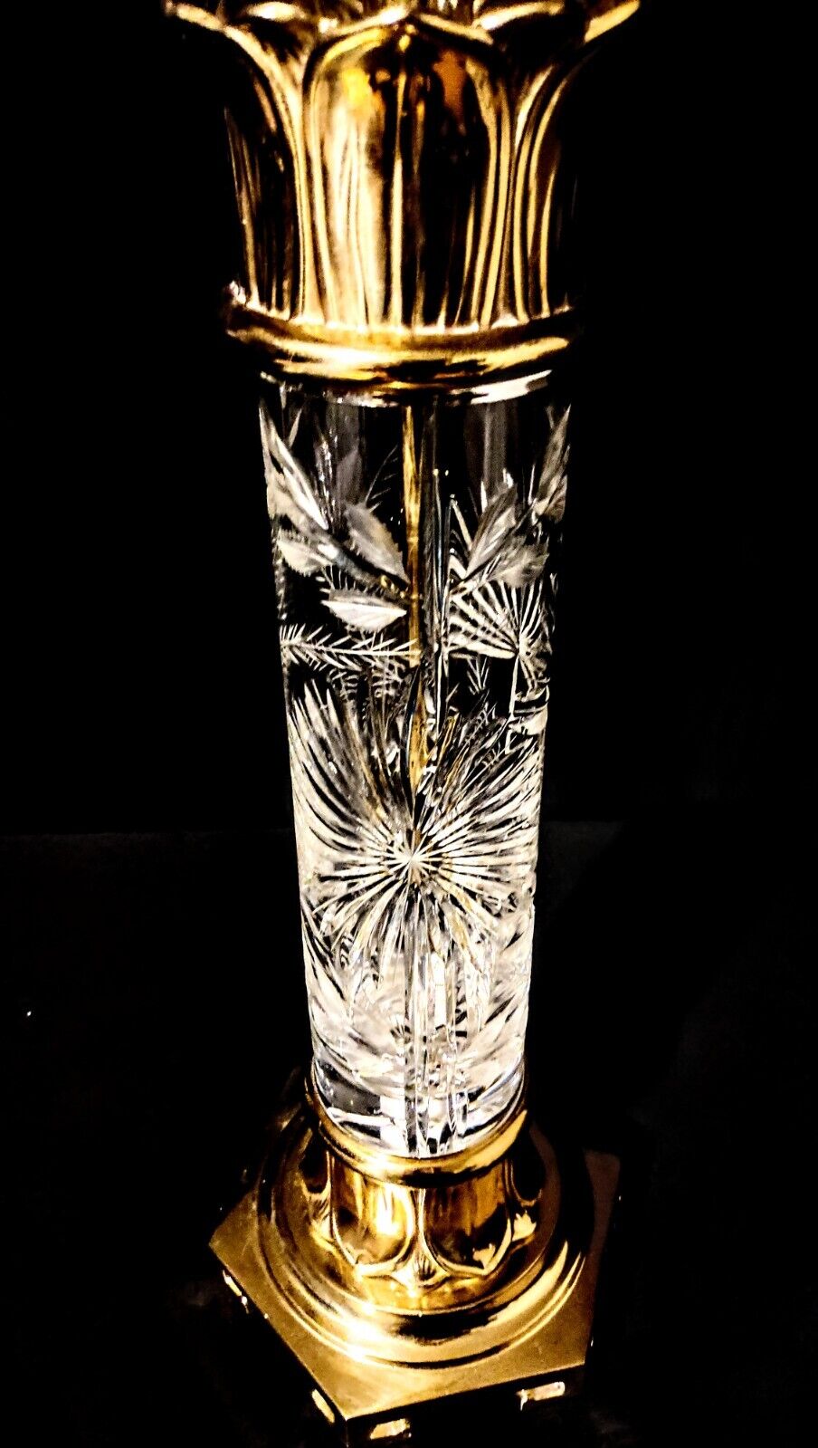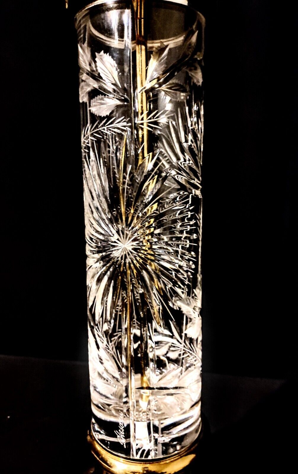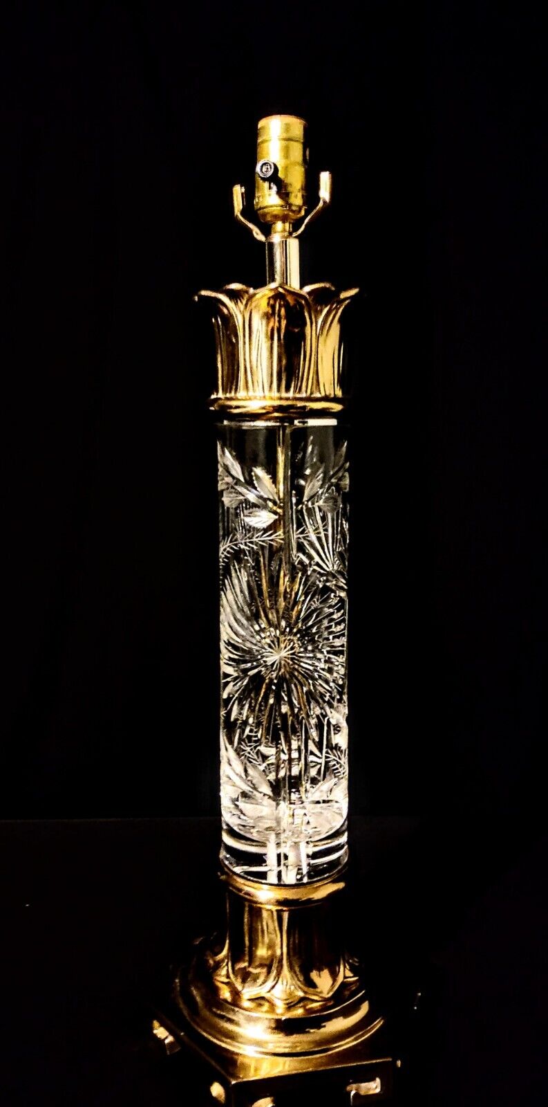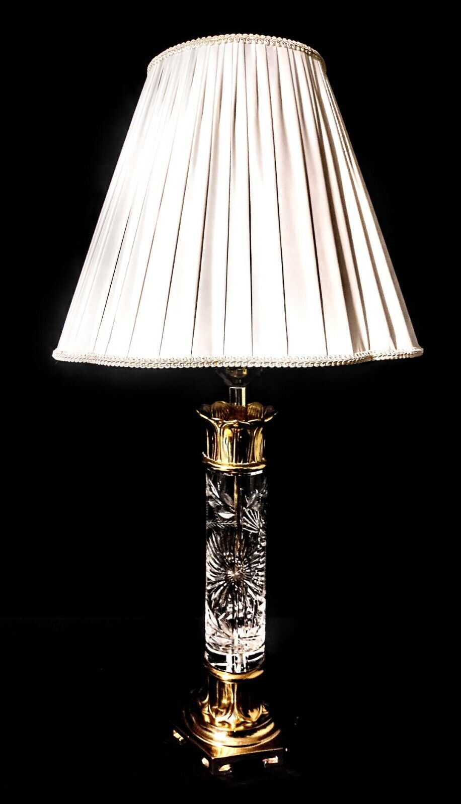 Dresden Signed Fine Cut Crystal and Solid Brass Extra Large Table Lamp - Mint!