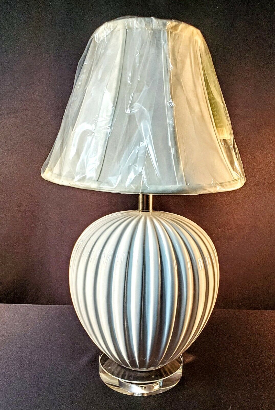 Fredrick Cooper Round Ribbed Semi Urn Style White Heavy Porcelain Table Lamp