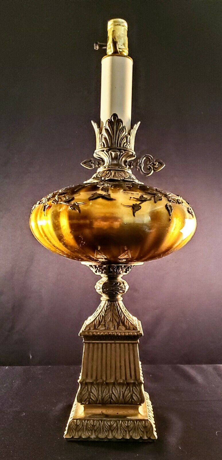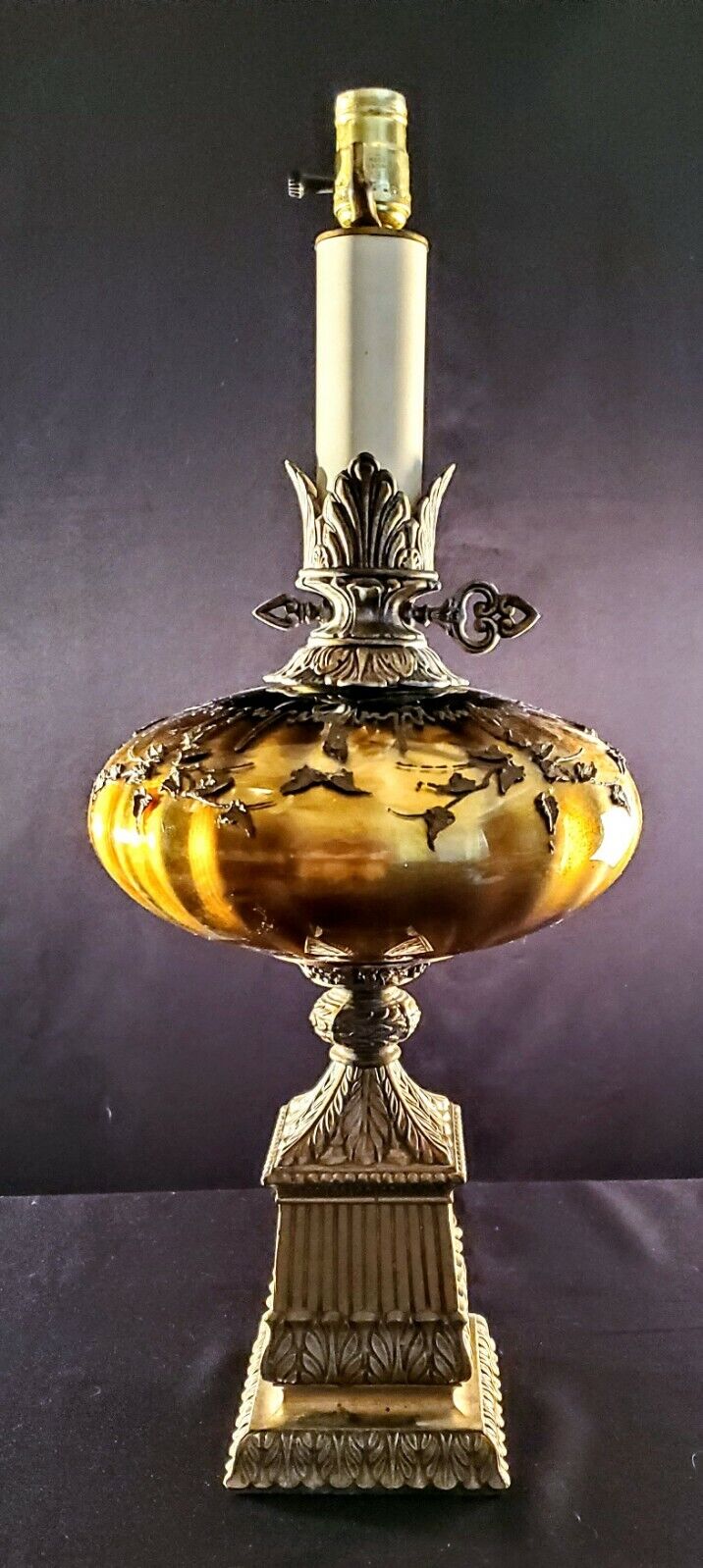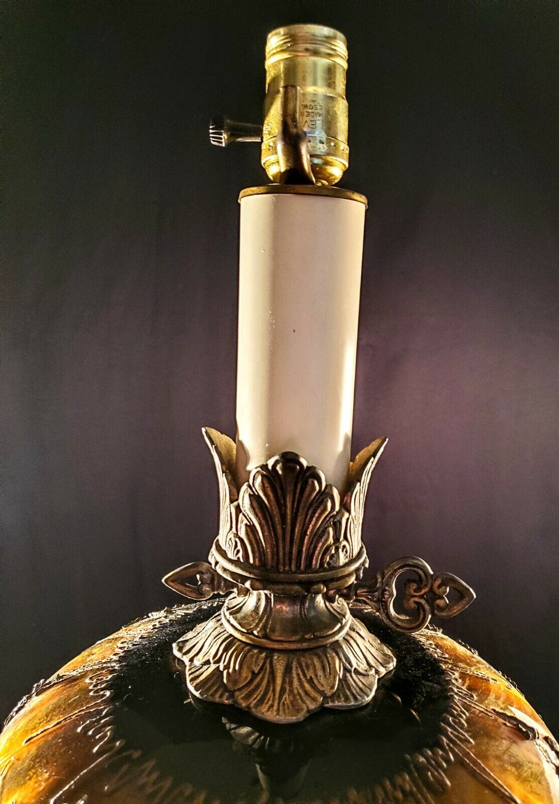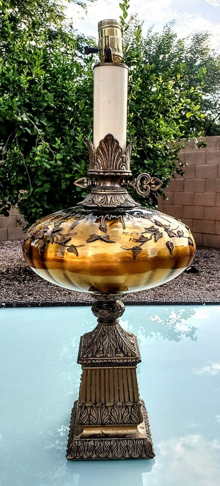Hollywood Regency Large Candy Glass Fine Antique Bronze and Glass Lamp - MINT!