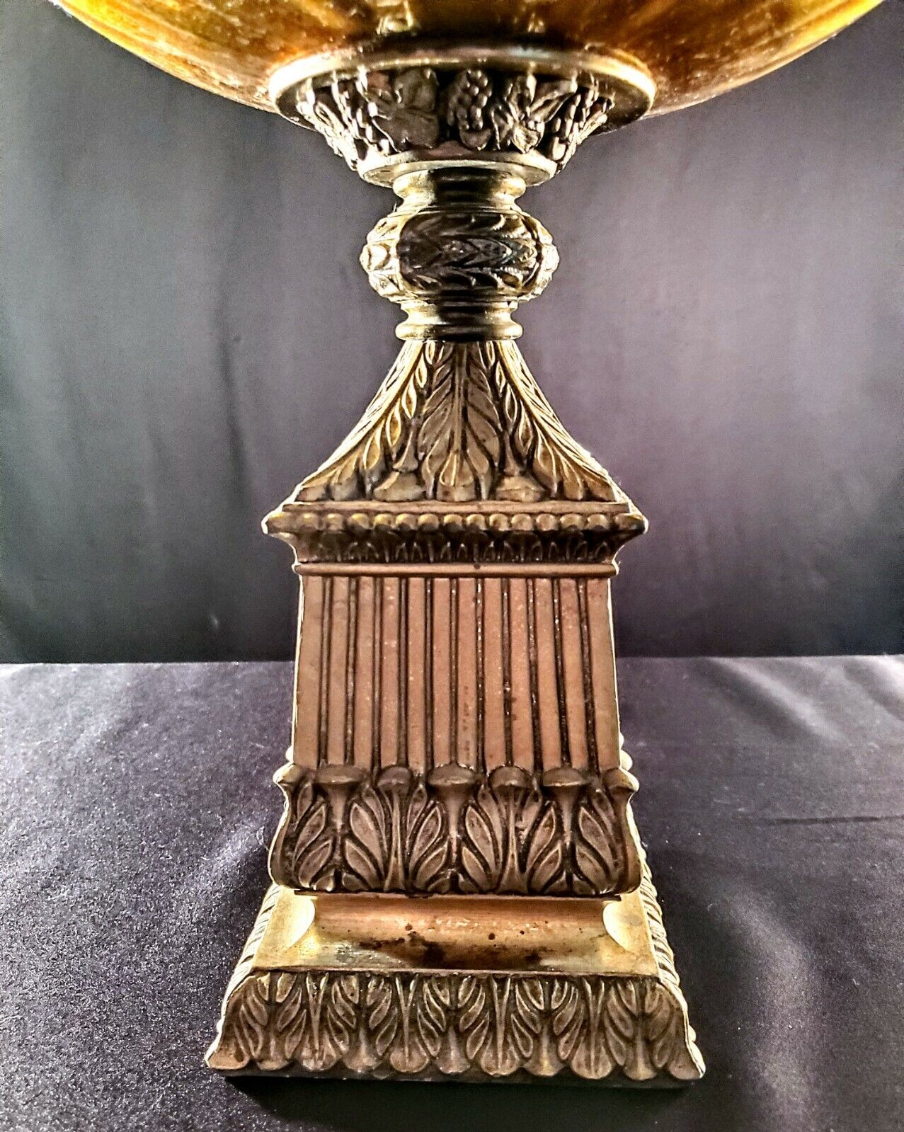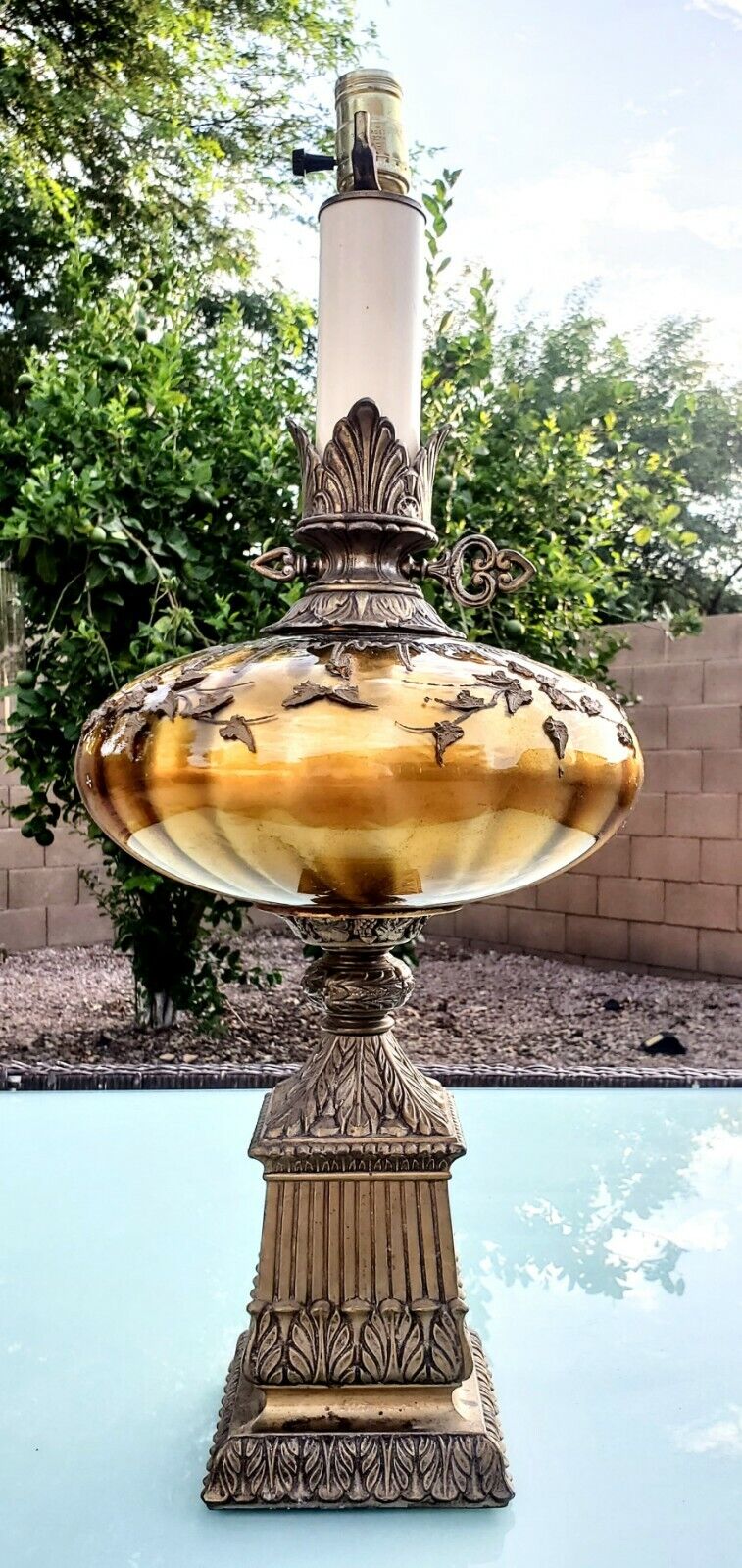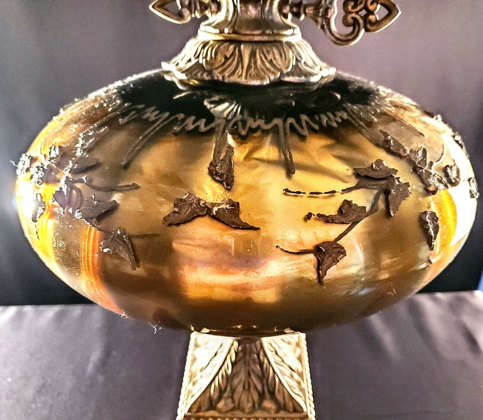 Hollywood Regency Large Candy Glass Fine Antique Bronze and Glass Lamp - MINT!