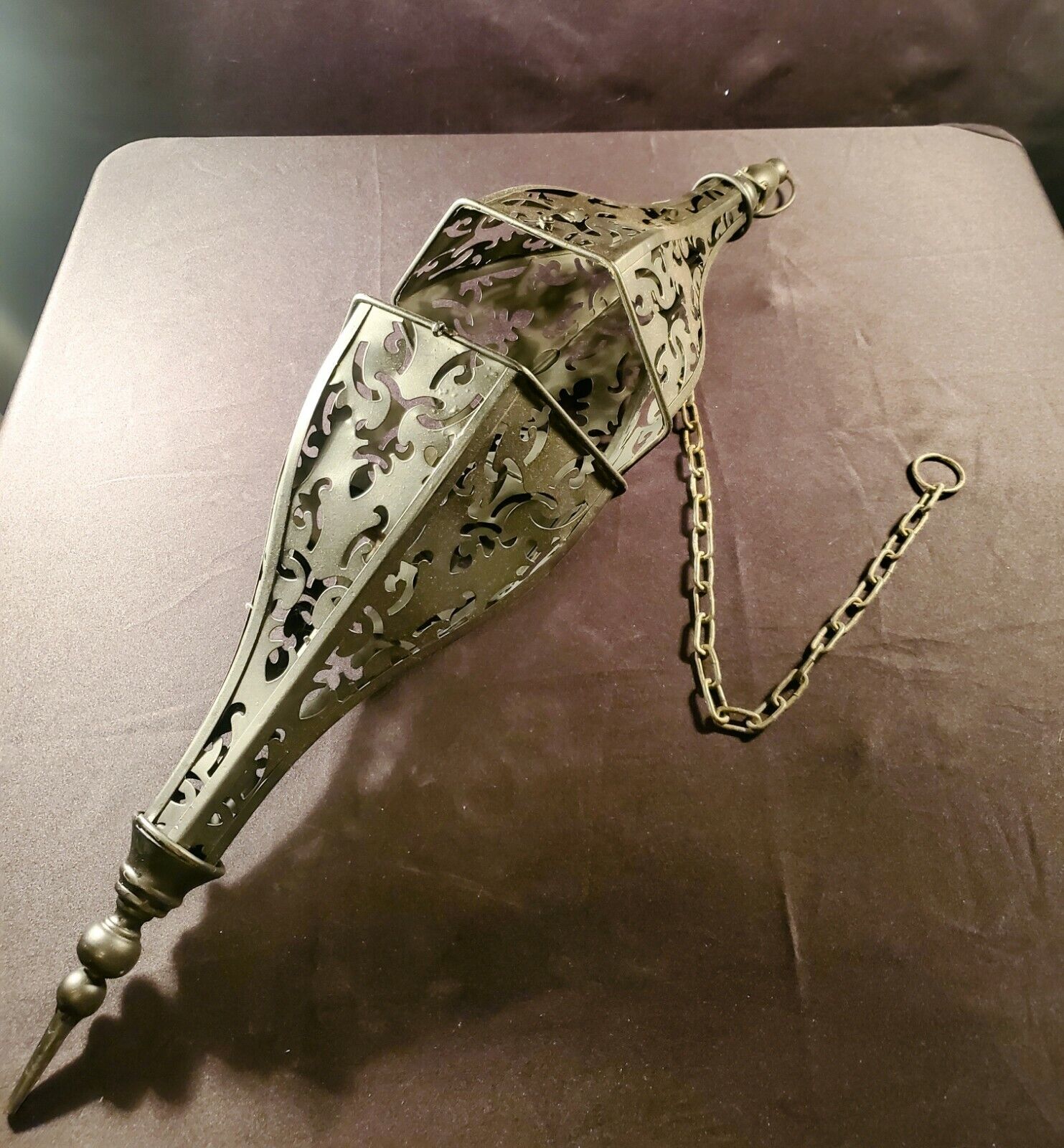 Large 36" Rod Iron Inspired Hanging Candle/LED Chandelier-Artist Signed Piece