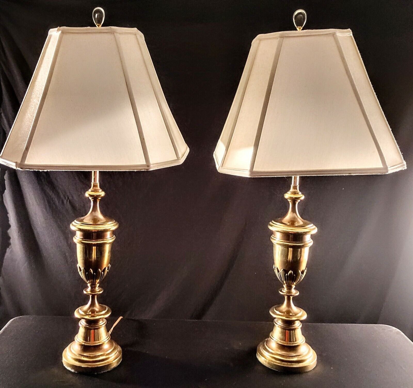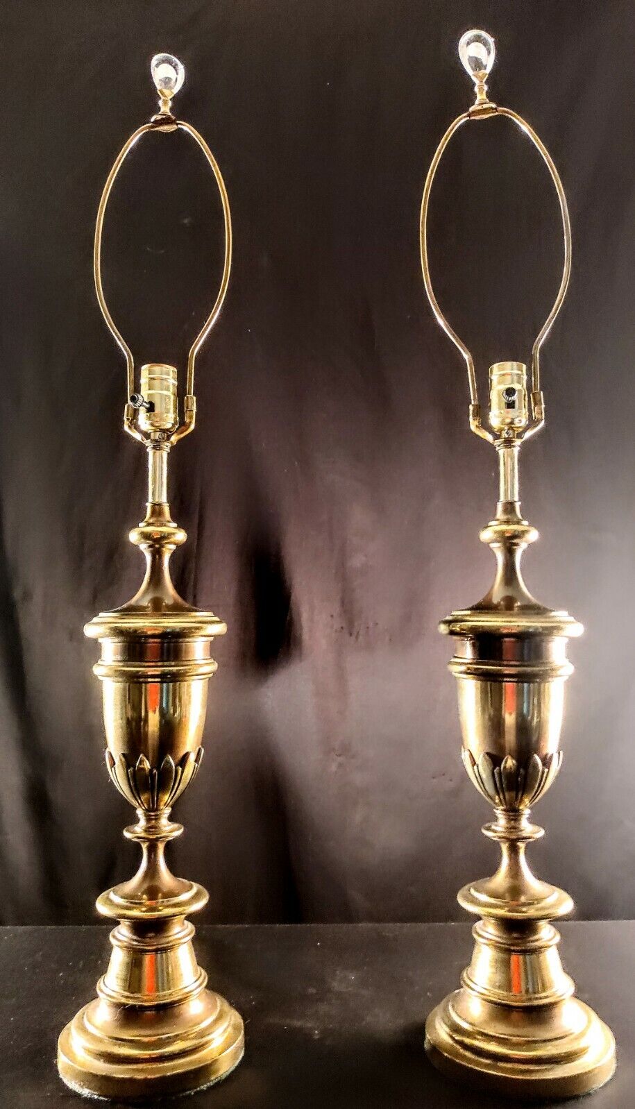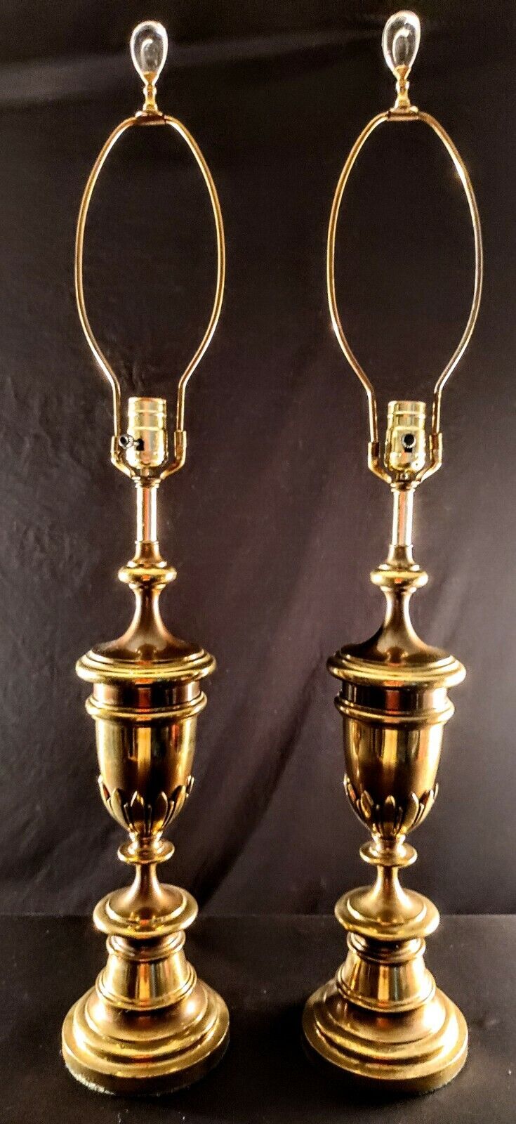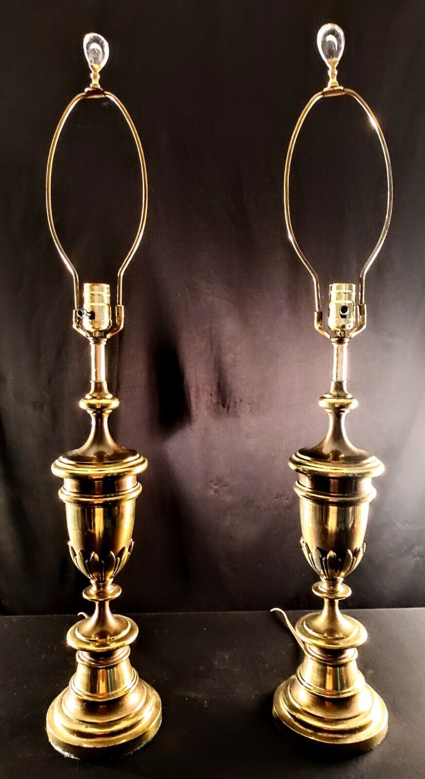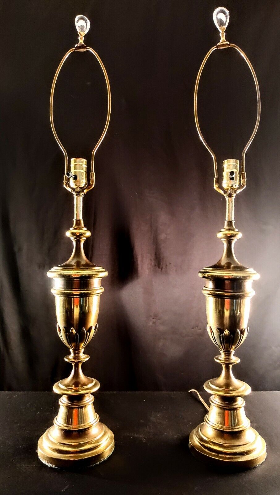 Matching Pair of 2 Stiffel Solid Brass Table Lamps - Original Harps & Finals!