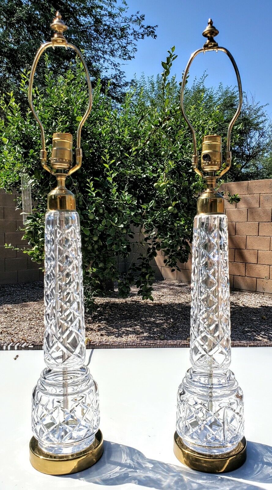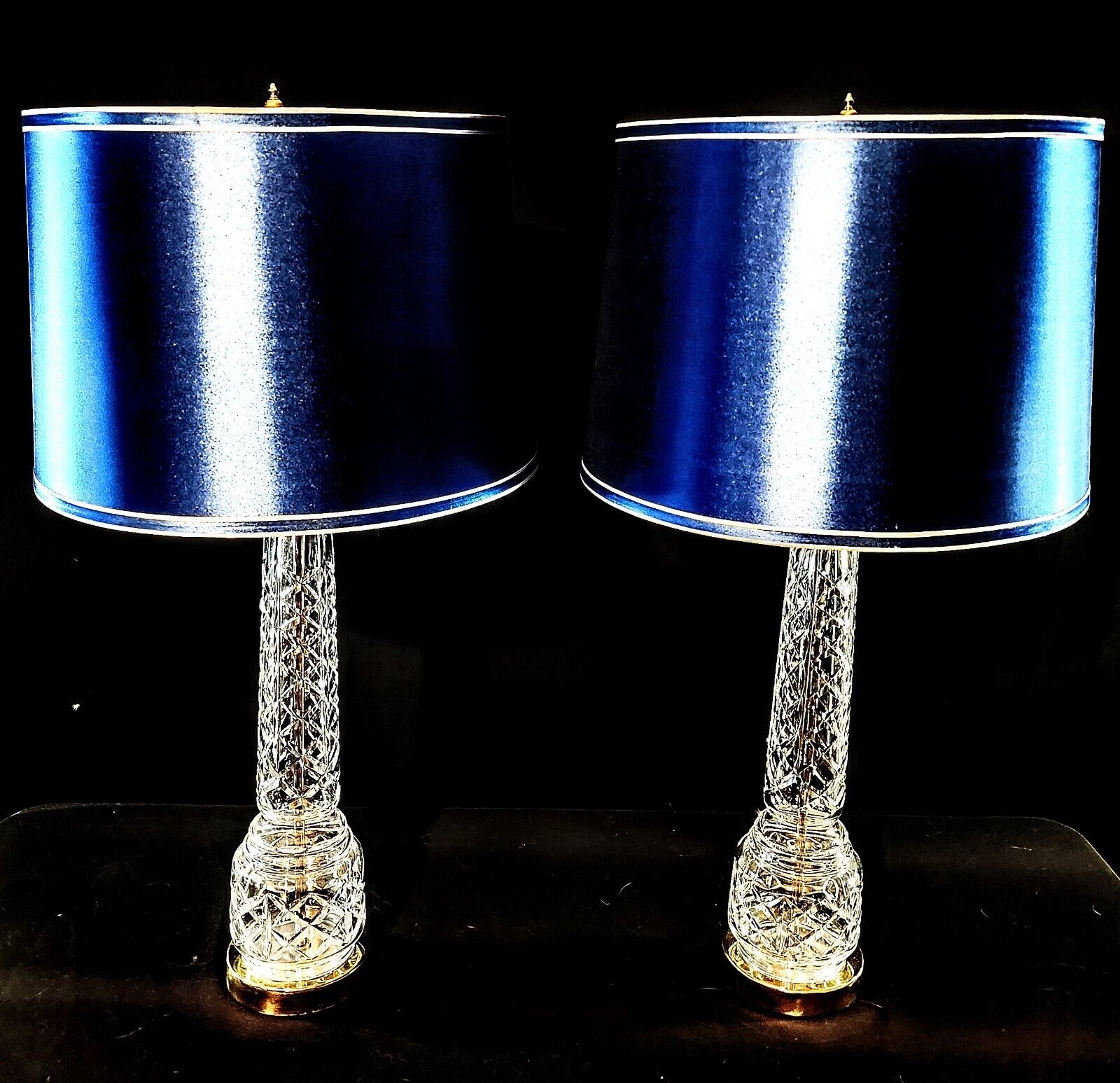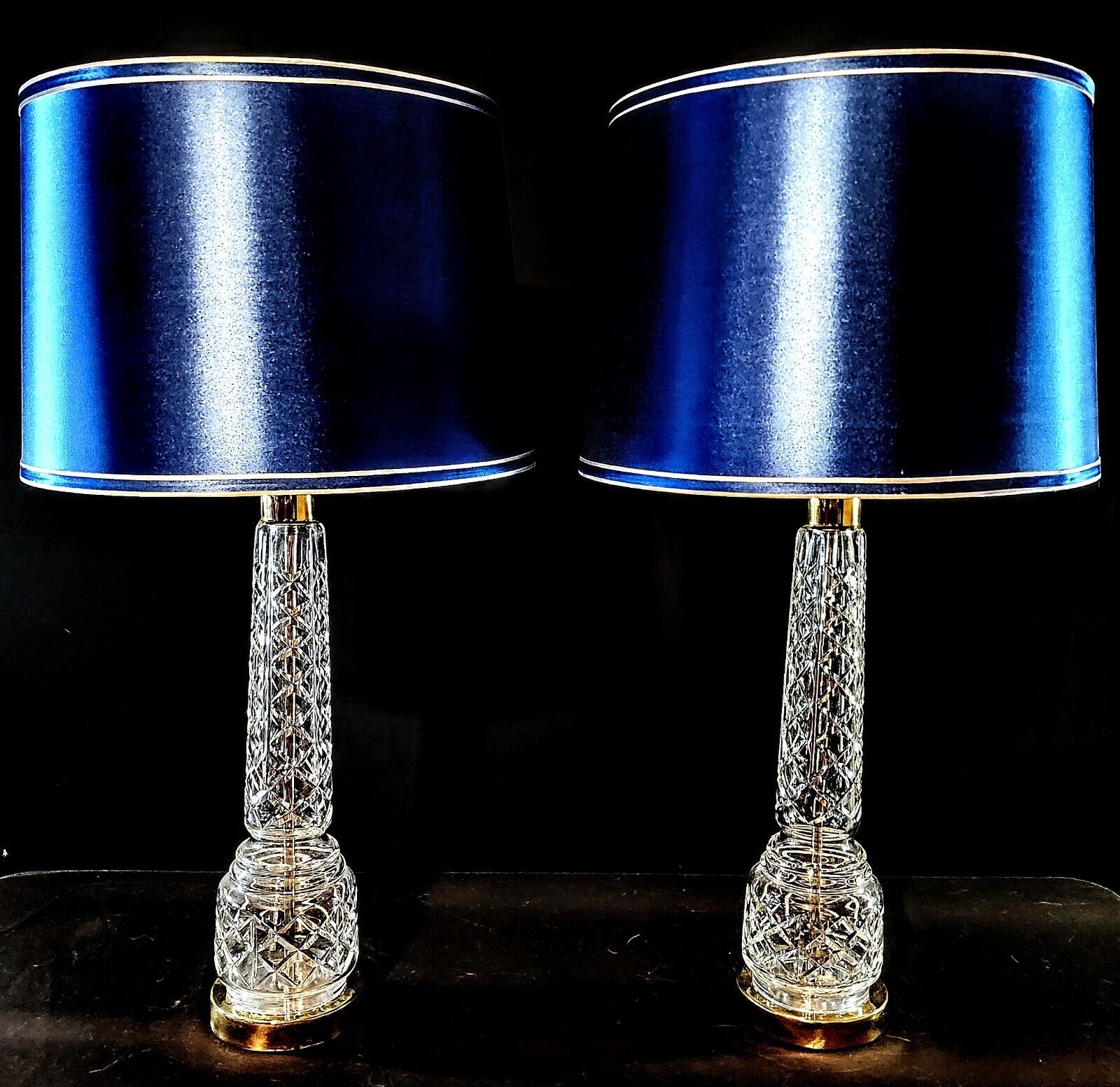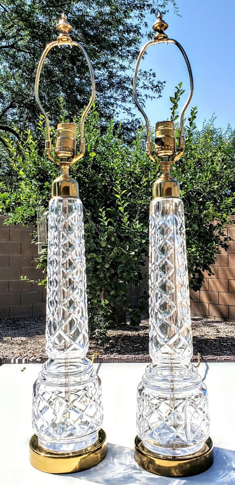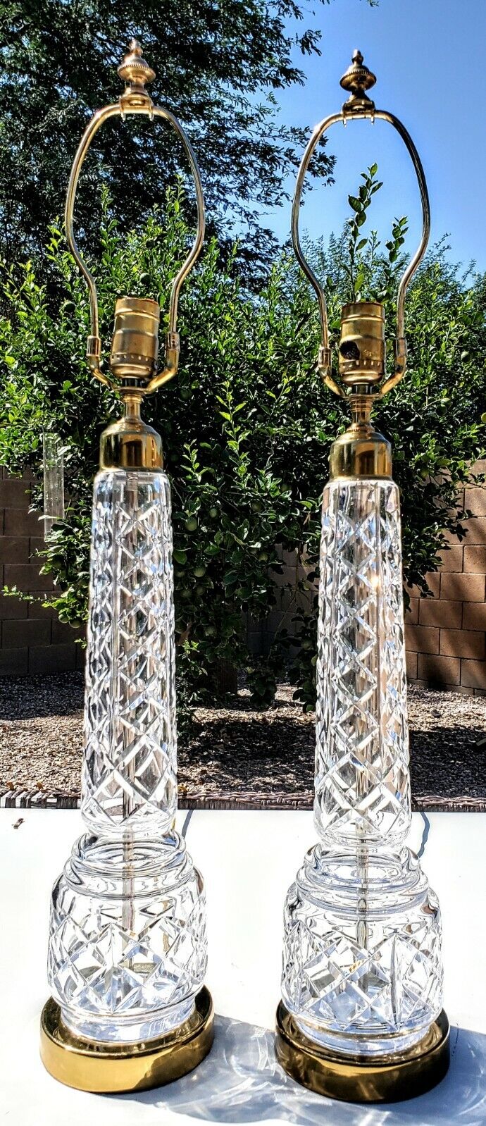 Pair of 2 Waterford Crystal Column Fine Cut Table Lamps - Perfect Condition!