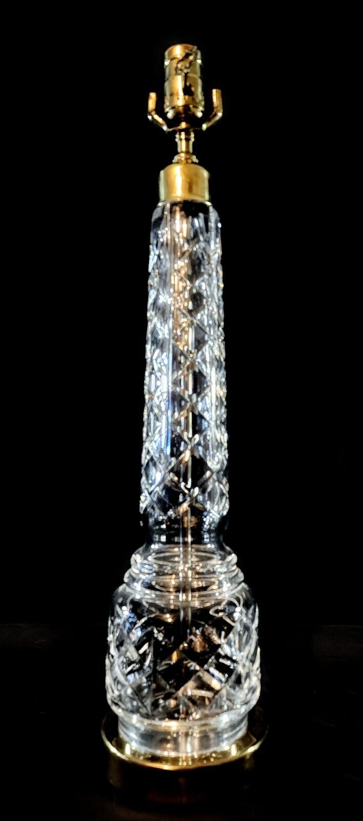 This exceptional Waterford crystal table lamp is a stunning example of the brand's renowned artistry. The imposing 30-inch height and substantial 16-inch crystal body create a commanding presence. The flawless crystal and polished brass base exude timeless elegance.