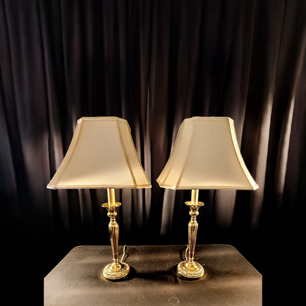 Set of Two Solid Brass Stiffel Buffet Lamps - 30 inches Tall - MINT CONDITION!