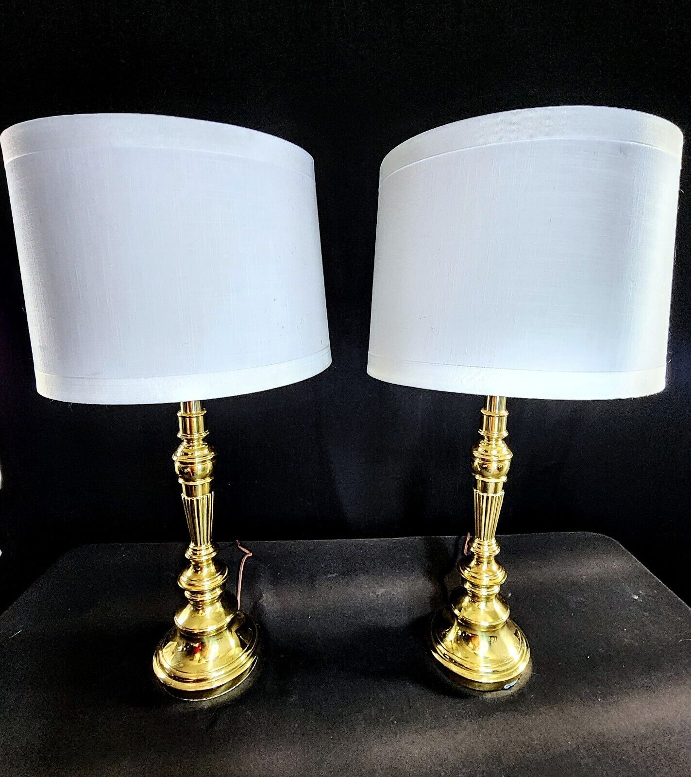 The lamps' clean lines and polished finish are hallmarks of Stiffel's renowned craftsmanship. The versatile design complements a variety of interior styles, making them a valuable addition to any home.