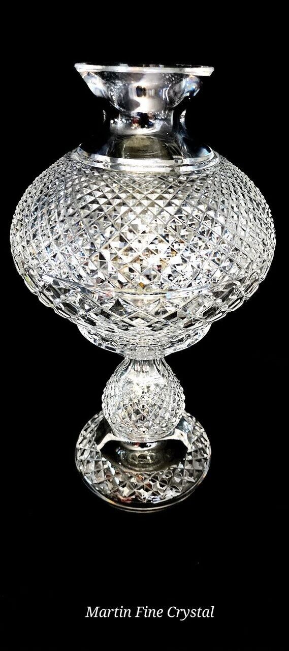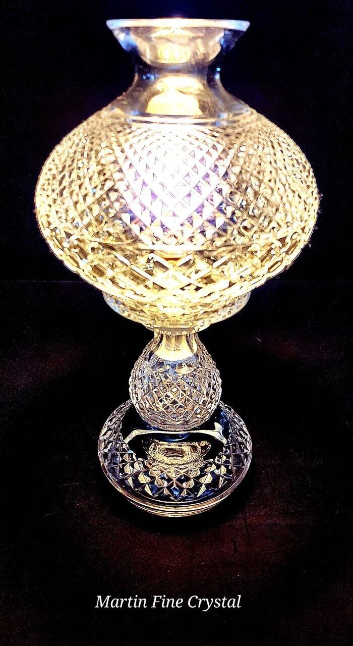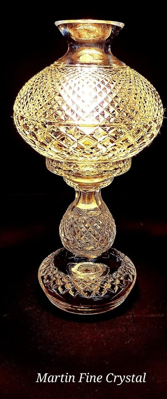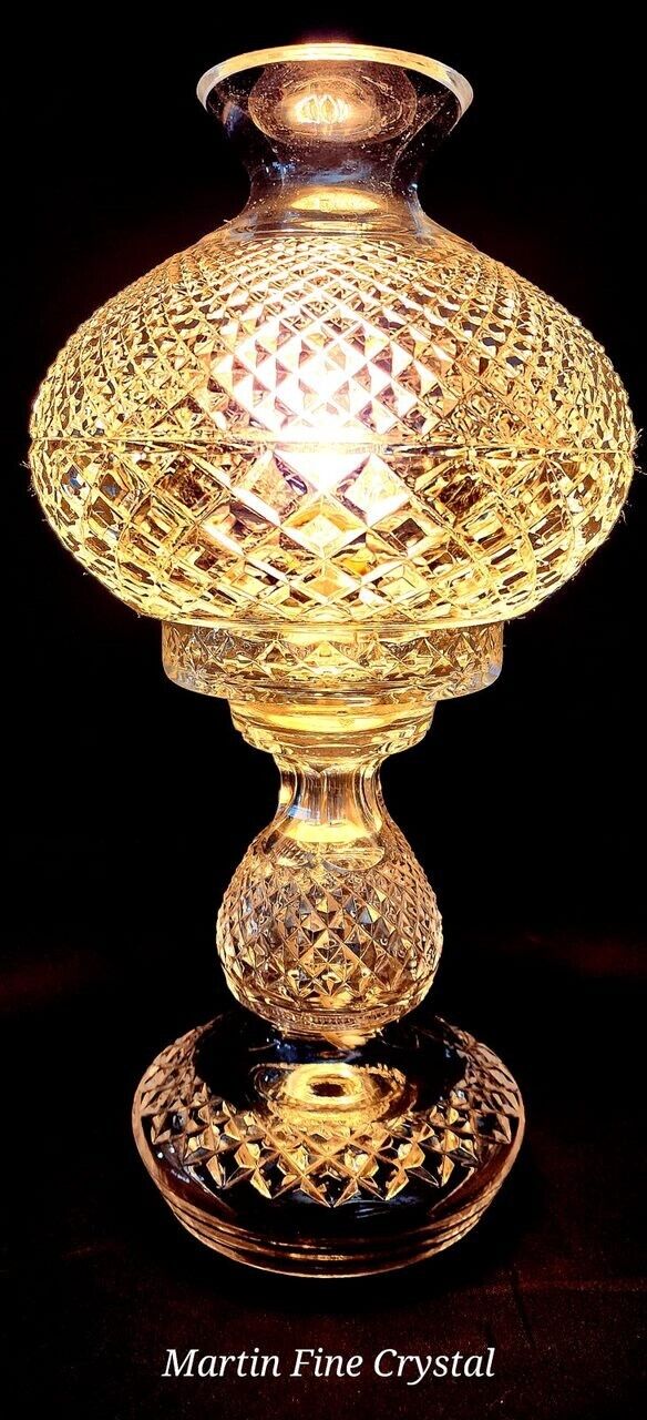 Waterford 14 Inch Electric Hurricane Lamp - 2 Piece Solid Crystal Body Hand Cut!