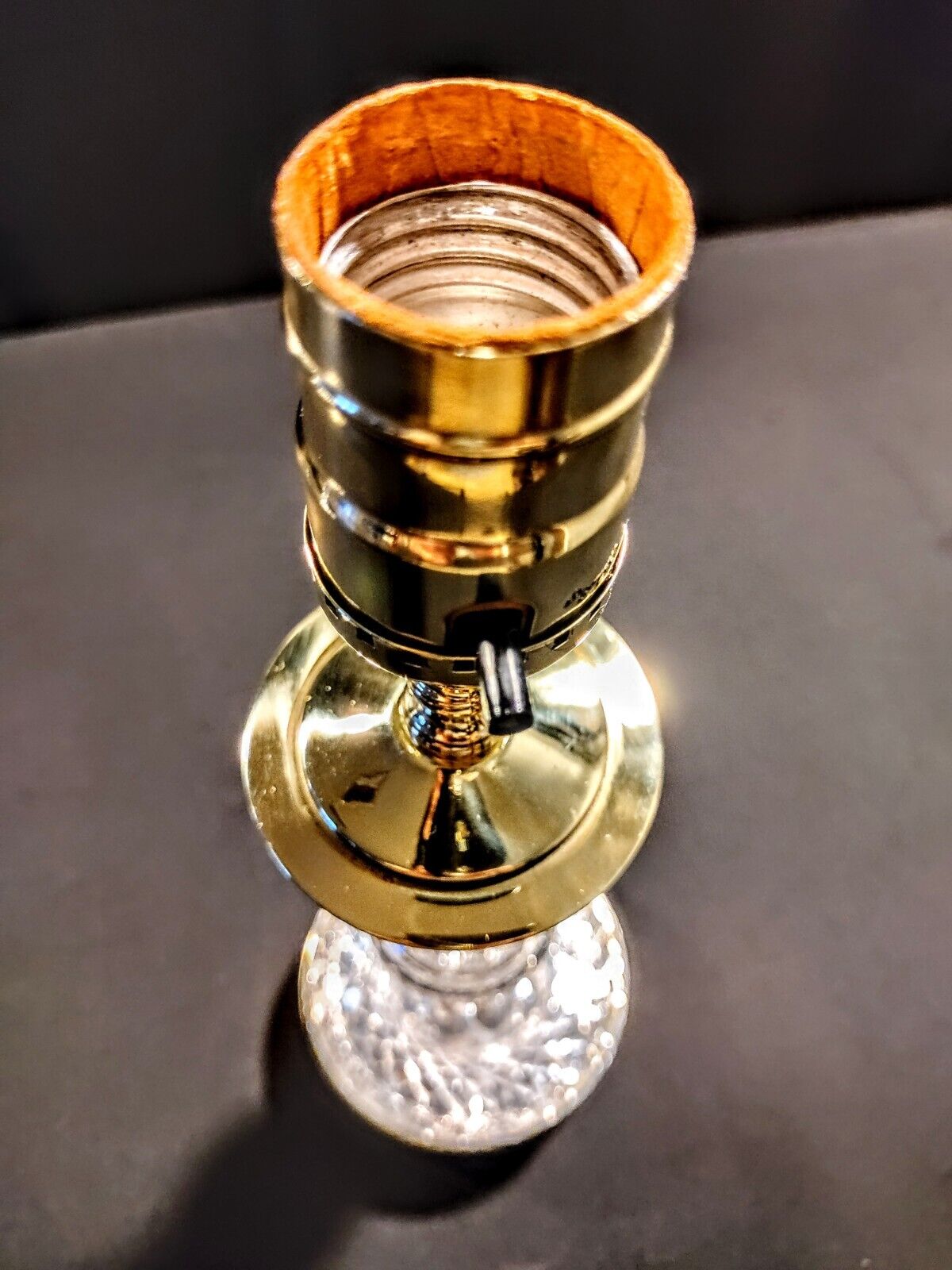This exquisite pair of Waterford Alana crystal lamps showcases the brand’s renowned craftsmanship. Both lamps are in pristine condition, with flawless crystal and a mirror-like brass finish. Standing 12 ½ inches tall with a 4-inch circular base, these lamps exude elegance and sophistication.