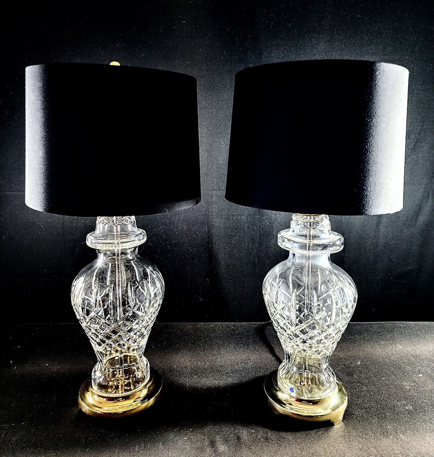 Waterford Araglin Pair of Fine Cut Irish Crystal Urn Style Table Lamps - MINT!!!