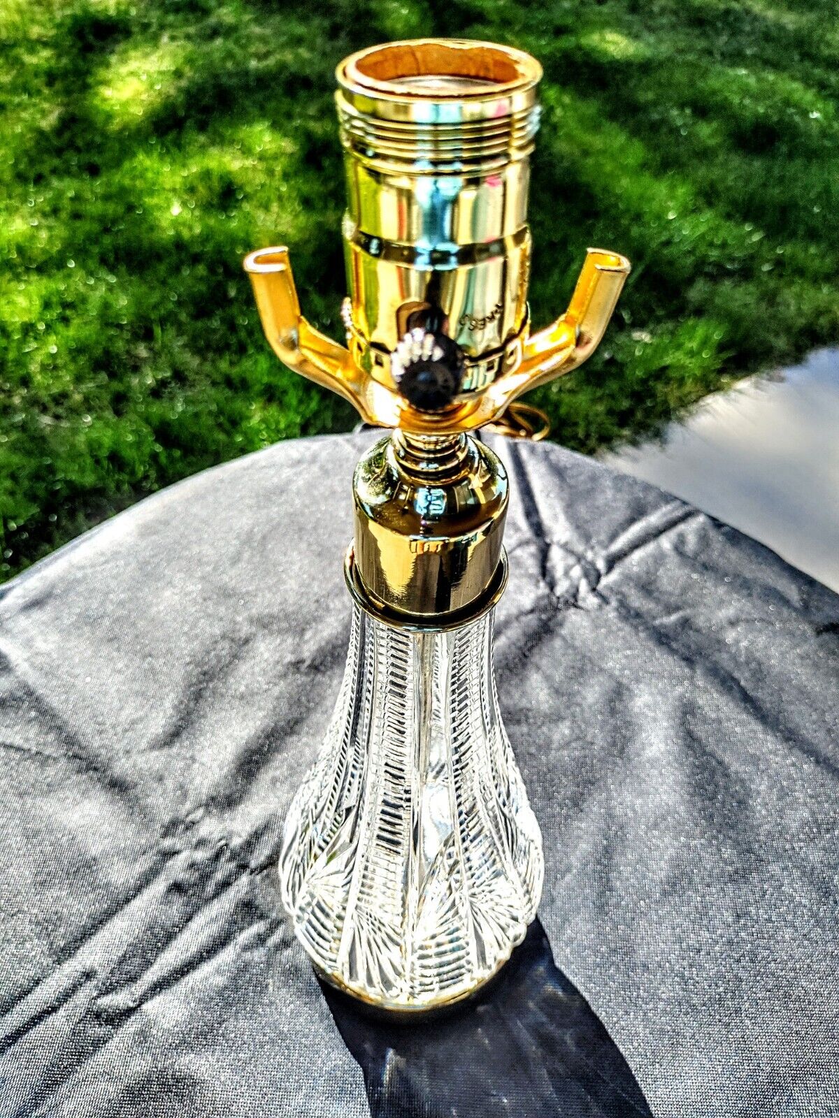 This entire lamp was disassembled, cleaned, stripped, had cut cleaner applied by way of a 6 horse power buffing wheel, and then polished and buffed at high speed producing a high gloss finish that I doubt even the lamp has coming straight from Waterford.